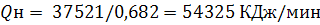 1,0, мазута- 0,65, газа - 0,5- низшая теплота сгорания натурального топлива,