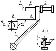 , 2, 8 - винты 3 - пятка 4 - кронштейн 5 - корпус 6 - цилиндрический штифт 7 - шарик; 9 - гайка