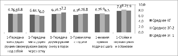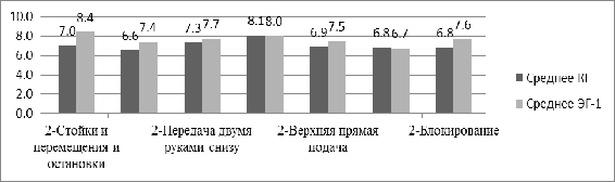 Результаты уровня освоения техники волейбола и теоретической подготовки