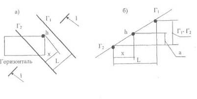 Перпендикулярно к большинству горизонталей проводится линия наибольшего ската и определяется уклон плоскости планировки. Методом интерполяции находятся высоты верхней (Нверх) и нижней (Нниж„) точки линии наибольшего ската в пределах указанного в задании участка местности.
