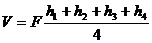 Количество грунта в одноименных квадратах принимается равным объему четырехгранной призмы с одним основанием, соответствующим рельефу, а с другим - поверхности планировки. Вершинами этой призмы являются рабочие отметки. Объем ее вычисляют как произведение средней рабочей отметки (из четырех) на площадь элементарной фигуры по формуле