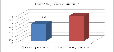 «Ходьба по линии». До эксперимента средний балл по данному тесту составлял 2,6,