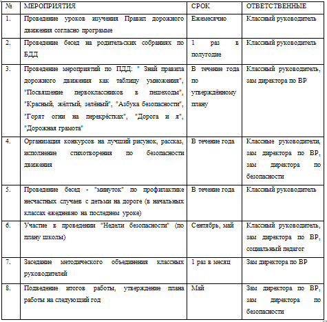 . Утвержденный план работы по профилактике детского дорожно-транспортного травматизма на учебный год.