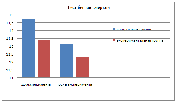 тесте бег восьмеркой в начале эксперимента, в контрольной группе результат