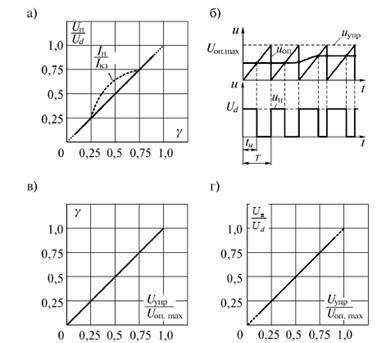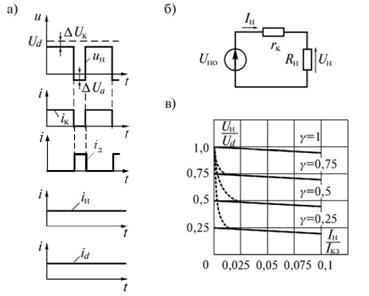 Не мал. 1.7 в наведено показано зовнішні характеристики понижуючого ППН, побудовані у відносних одиницях. За базові величини прийнято напруга Ud та струм короткого замикання