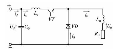 Розглянемо спочатку неперервний режим, при якому струм навантаження не спадає до нуля. Такий режим забезпечується у всьому діапазоні струмів, якщо Lн=∞.