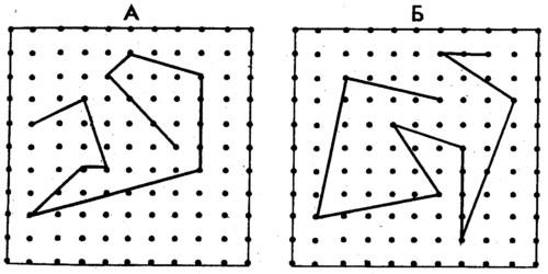 Ребенку поочередно предлагают каждый из двух рисунков. После предъявления каждой части рисунка, А и Б, ребенок получает трафаретную рамку с просьбой нарисовать на ней все линии, которые он видел и запомнил на каждой части рисунка. По результатам двух опытов устанавливается среднее количество линий, которое он воспроизвел по памяти правильно.