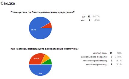 Как показало анкетирование (Рис.2), 50% опрошенных людей используют косметику ежедневно, а значит, сталкиваются с выбором косметических средств довольно часто и составляют целевую аудиторию производителей данной отрасли.
