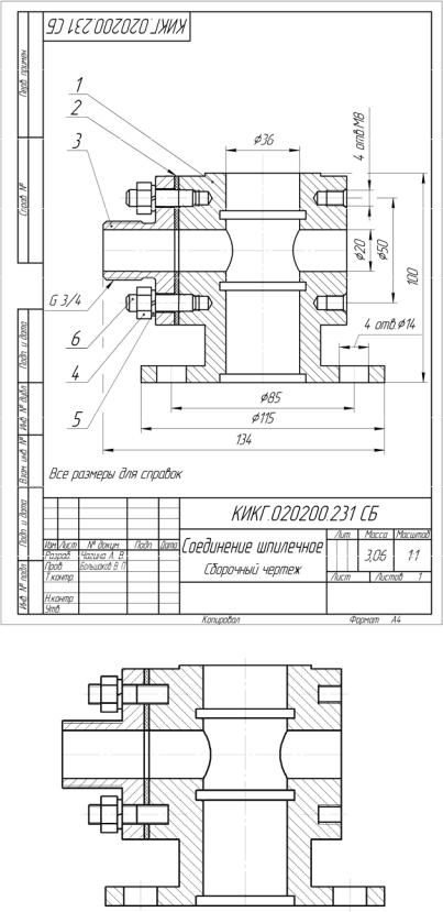 Ассоциативный чертеж Соединения шпилечного показан на рис. 3.36.
