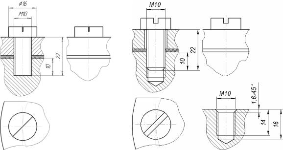Соединение винтом с цилиндрической головкой изображено на рис. 1.4, а.