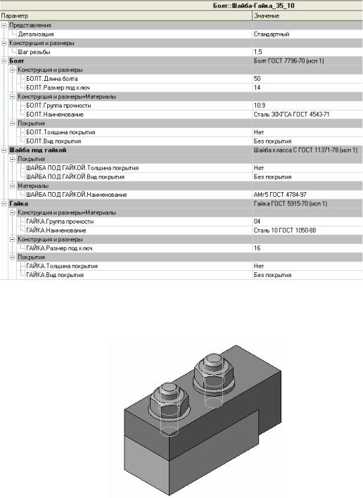 На Панели свойств нажмите кнопку Создать объект — позиционирование соединения закончено. Система автоматически подберет параметры болтового соединения. В окне Библиотеки Стандартные изделия нажмите кнопку Применить.