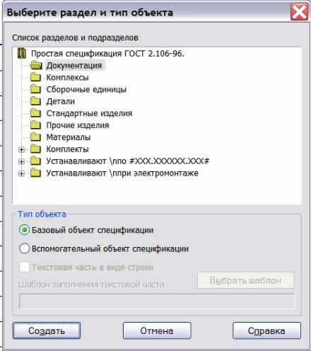 2.На инструментальной панели Спецификация выберите команду Добавить раздел. Из диалогового окна выберите раздел