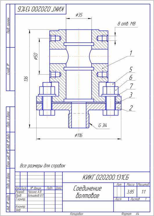 Рис. 3.24. Сборочный чертеж соединения болтового