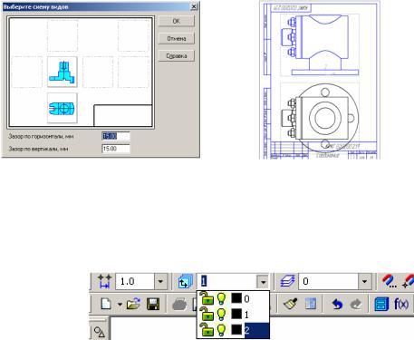 5.Нажмите кнопку Схема видов. Откажитесь от создания вида Слева (рис. 3.29, а) и нажмите кнопку ОК.