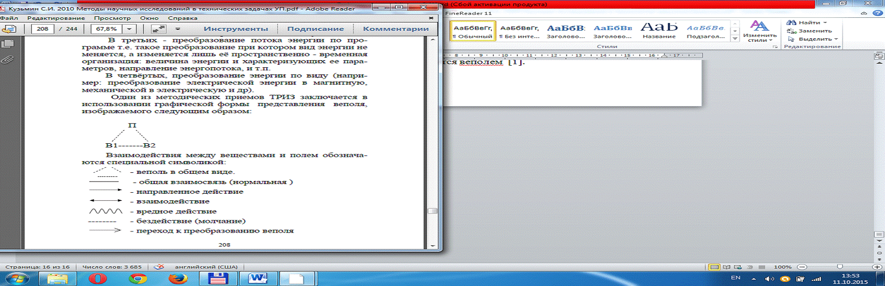 определение и применение вещественно-полевых ресурсов (ВПР);