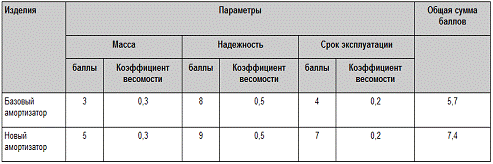 Расчет общей суммы баллов по базовому и новому амортизаторам