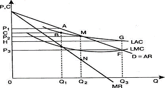 предельных затрат длительного периода, D - кривая спроса, MR - соответствующая ей