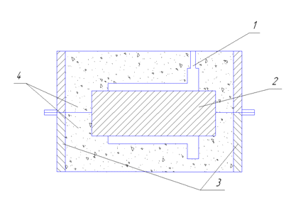 модели 1, модели шлакоуловителя 2, стояка 3 и выпора 4. Устанавливают верхнюю