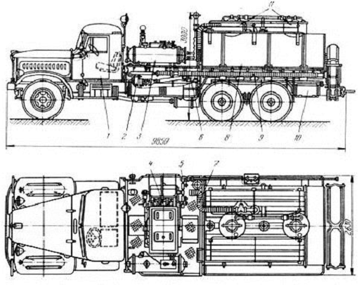 шлангов; 10 - ящик для инструментов; 11 - горловина цистерны