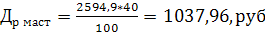 Где Д - размер дополнительной заработной платы в процентах к основной заработной плате, %.