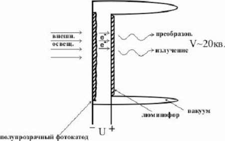 Если ф/катод чувствителен к ИК, УФ, рентгеновским излучениям, получаем преобразование изображения по диапазону.