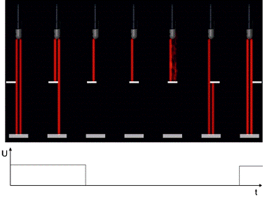 То есть, меняя силу тока (или/и длину до отражателя), мы сможем изменять интенсивность излучения.