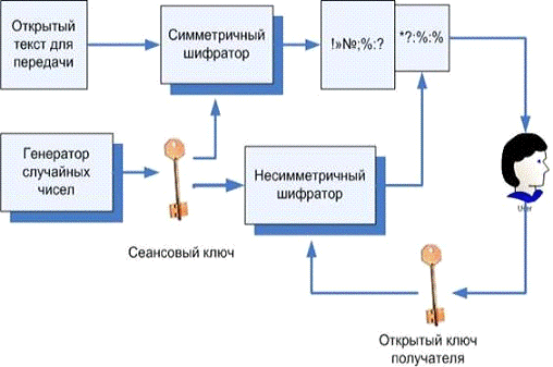 симметричный (сеансовый) ключ, который, в свою очередь, зашифровывается