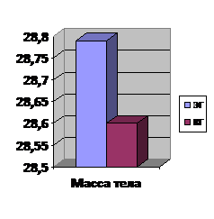 Динамика массы тела в экспериментальной группе составила 28,79 и 29,99 (4,16%), в контрольной - 28,26 и 29,39 (3,99 %); длины тела в экспериментальной группе - 130,38 и 131,58 (0,92%), в контрольной - 129,83 и 130,96 (0,86%); ОГК в экспериментальной группе - 59,94 и 61,14 (2%); в контрольной - 59,95 и 61,08 (1,85 %); МСР в экспериментальной группе - 1,8 и 4,83 (38,8%), в контрольной - 1,78 и 2,91(37,2%).