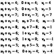 таблицы, в которых ui + vj = cij, полагая, что