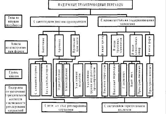 Рисунок 1 - Классификация надземных трубопровод переходов по конструктивным признакам