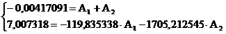 определения постоянных интегрирования А1 и А2 составим и решим систему