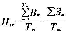 где Пср - средняя величина прибыли по инвестиционному проекту за один шаг его реализации, руб.; Вт - выручка от реализации инвестиционного проекта на шаге т, руб.; Зт - полные операционные издержки на реализацию инвестиционного проекта на шаге т, руб.; Тос - общий полезный срок реализации инвестиционной стратегии, годы.
