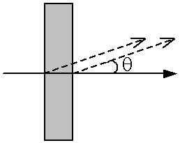Переходное излучение, возникающее при пересечении частицей границы раздела двух сред. Величина угла на рисунке сильно преувеличена.