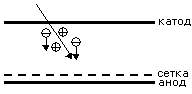 напряжённость поля вблизи нити-анода может достигать 40 000 вольт/см., в то