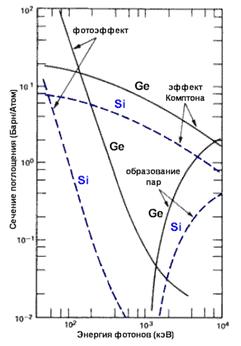 форма измеряемого спектра. Так при энергии 100 кэВ сечение фотоэффекта в Ge