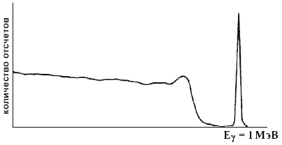 Так при энергии 1 МэВ отношение комптоновского сечения к сечению фотоэффекта составляет ~90. На рис. 4 показан спектр при энергии гамма-квантов 1 МэВ.