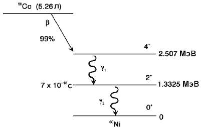 60Ni (7∙10-13 с), которое испытывает второй гамма-переход каскада,