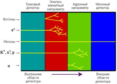Детекторы, используемые в физике высоких энергий для регистрации частиц, состоят, как правило, из нескольких структур, входящих в состав единого регистрирующего комплекса. Каждая структура рассчитана для регистрации частиц с определенными характеристиками. Отдельные структуры детектора расположены так, чтобы различного типа частицы, последовательно проходя через них, оставляли определённую информацию о прошедшей через них частице. На основе этой информации затем восстанавливаются такие характеристики частицы как её тип, энергия, импульс, характеристики распада.