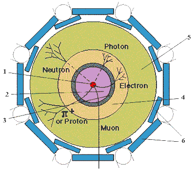 калориметр; 5 - адронный калориметр; 6 - мюонный детектор.
