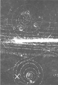 Фотон не оставляет видимого следа в камере, и следы пары электрон - позитрон возникают как бы из ничего. Можно измерить радиусы этих следов и оценить энергию, уносимую обеими частицами. Для наших снимков энергия лежит в пределах 70-100 МэВ.