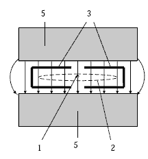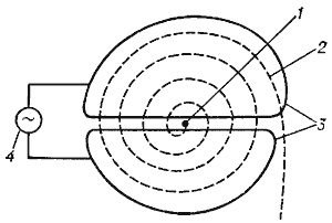 частицы, 3 - ускоряющие электроды (дуанты), 4 - генератор ускоряющего поля, 5 -