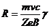 Когда скорость частицы близка к скорости света, соотношение между кинетической энергией частицы Е и радиусом траектории R имеет в системе СИ вид