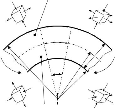 деформации вызывают растягивающие напряжения в зоне растяжения. В зоне сжатия тангенциальные напряжения – сжимающие.