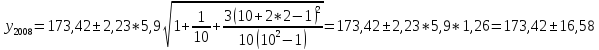 Среднеквадратическая ошибка оценки прогнозируемого показателя определяется по следующей формуле: