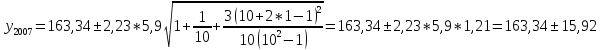Для тренда, выраженного полином второго или третьего порядка, доверительные интервалы прогноза определяются следующим образом: