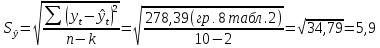 2. Рассчитаем среднеквадратическую ошибки оценки прогноза: