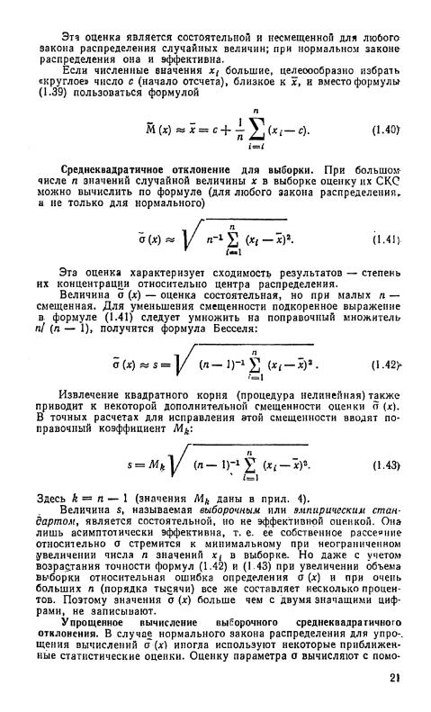 Среднеквадратичное отклонение результата. Оценка х\математического ожидания случайной величины х> вычисленная по фор муле (1.39), отличается от генерального среднего р (х). Точность этой оценки характеризуется ее выборочным средним квадратич ным отклонением