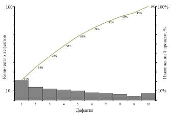 Диаграмма Парето - специфический комбинированный график на котором совмещены столбчатая диаграмма и ломаная кривая [17].