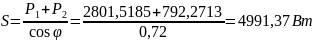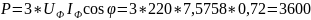 Р=3600,0202 ≈ Р1 + Р2 = 2801,5185+792,2713=3593,7898 Вт