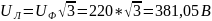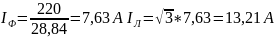 При соединении приемника электрической энергии в треугольник каждое фазное напряжение равно линейному UФ=Uл=220в